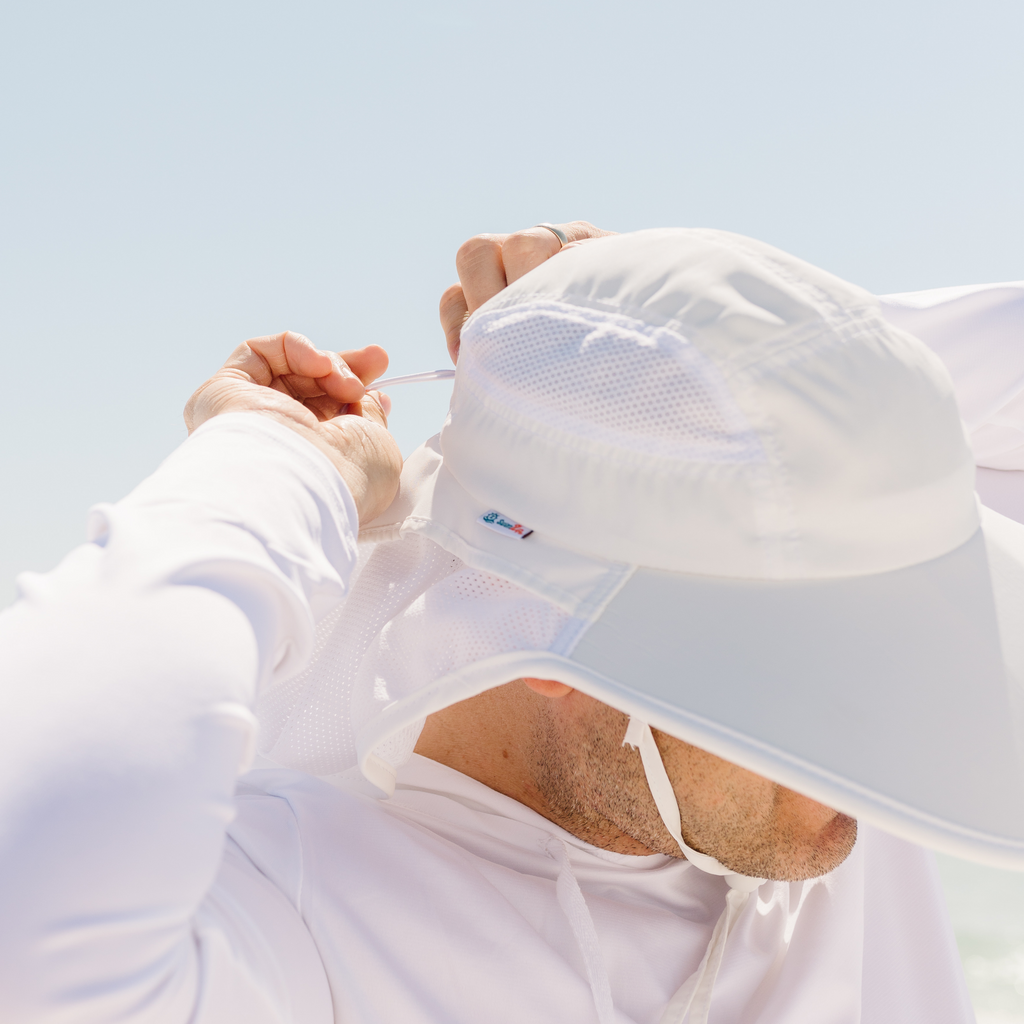 Adult Wide Brim + Flap Neck Sun Protective Adventure Hat | White