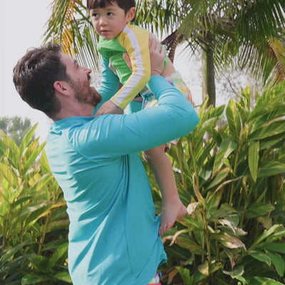 This set includes both comfy trunks with a super soft liner and a super easy to get on and off, full zip short sleeve swim shirt. No more sunscreen battles because everywhere that’s covered by SwimZip is protected from the sun’s harmful rays!
