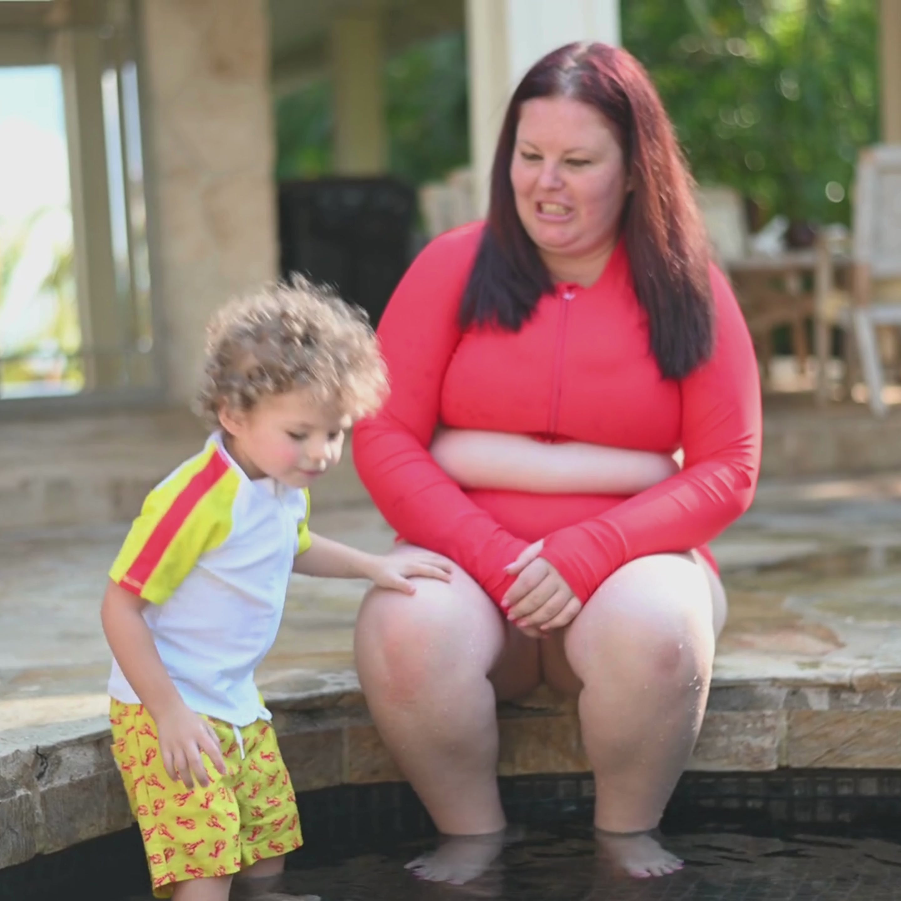 This set includes both comfy trunks and a super easy to get on and off, full zip short sleeve swim shirt. No more sunscreen battles because everywhere that’s covered by SwimZip is protected from the sun’s harmful rays!