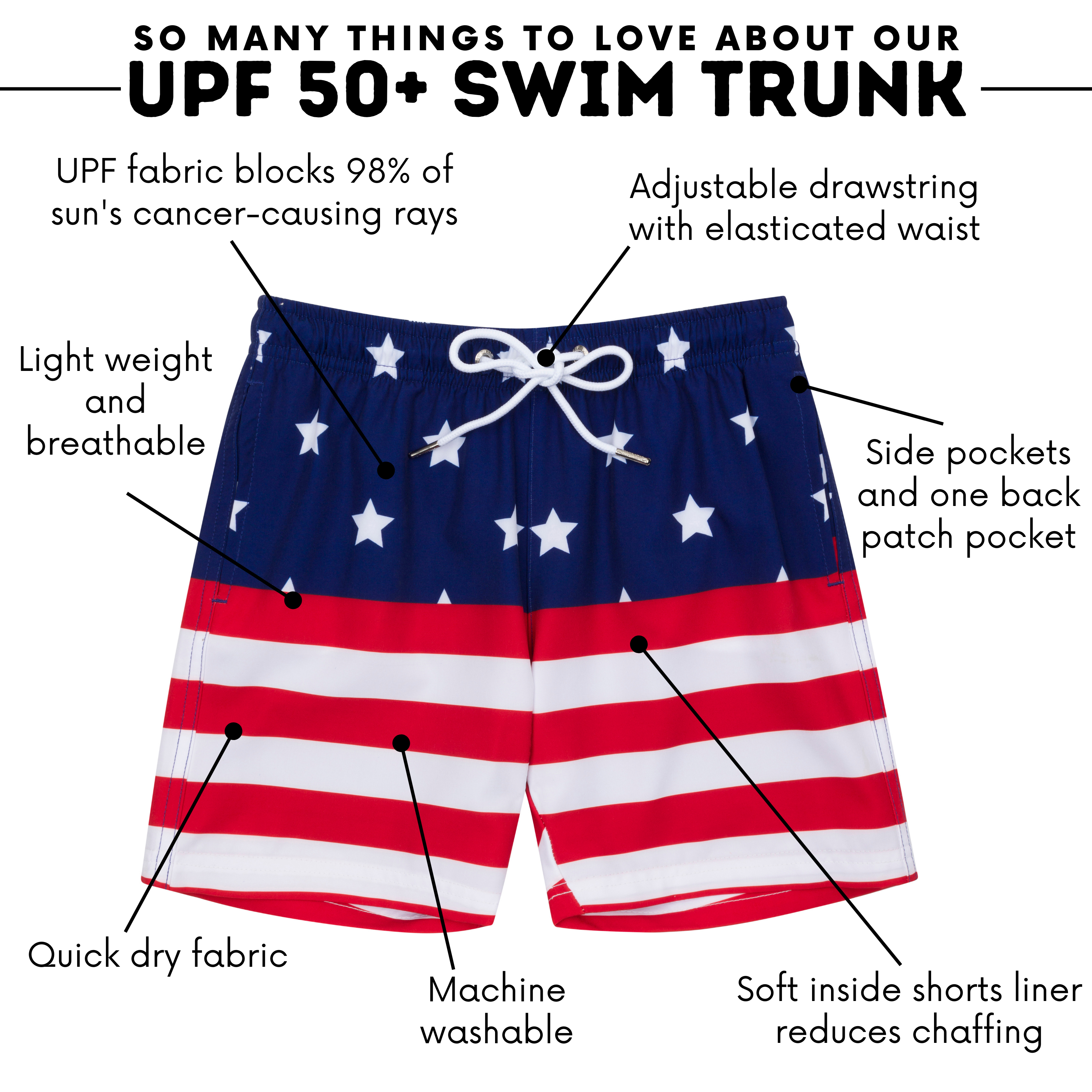 These swim trunks are perfect for the beach, the lake, the backyard sprinkler or the pool!
