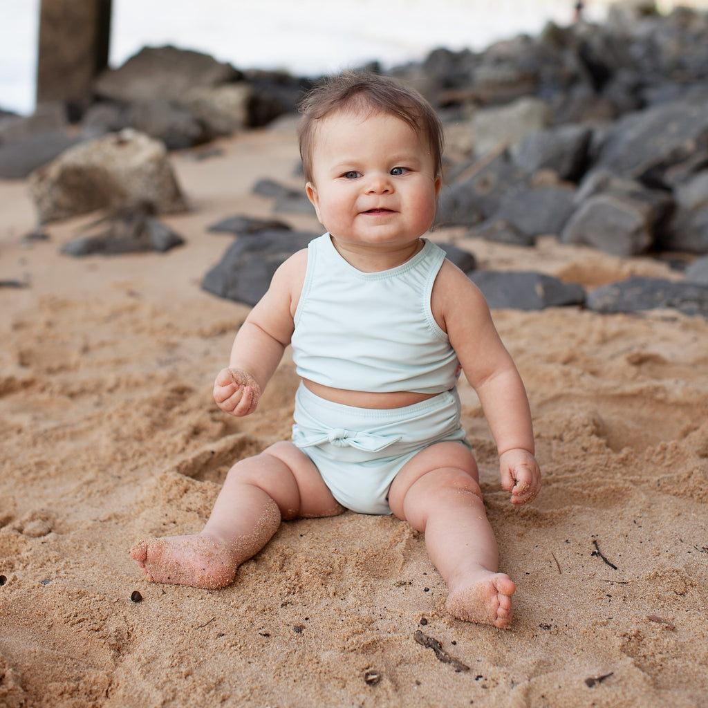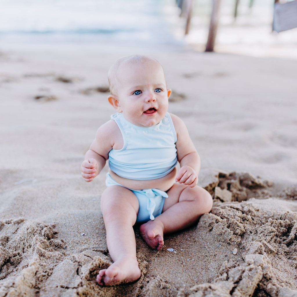 Girls Halter Top High-Waisted Set (2 Piece) | "Tied with a Bow" Whispering Blue