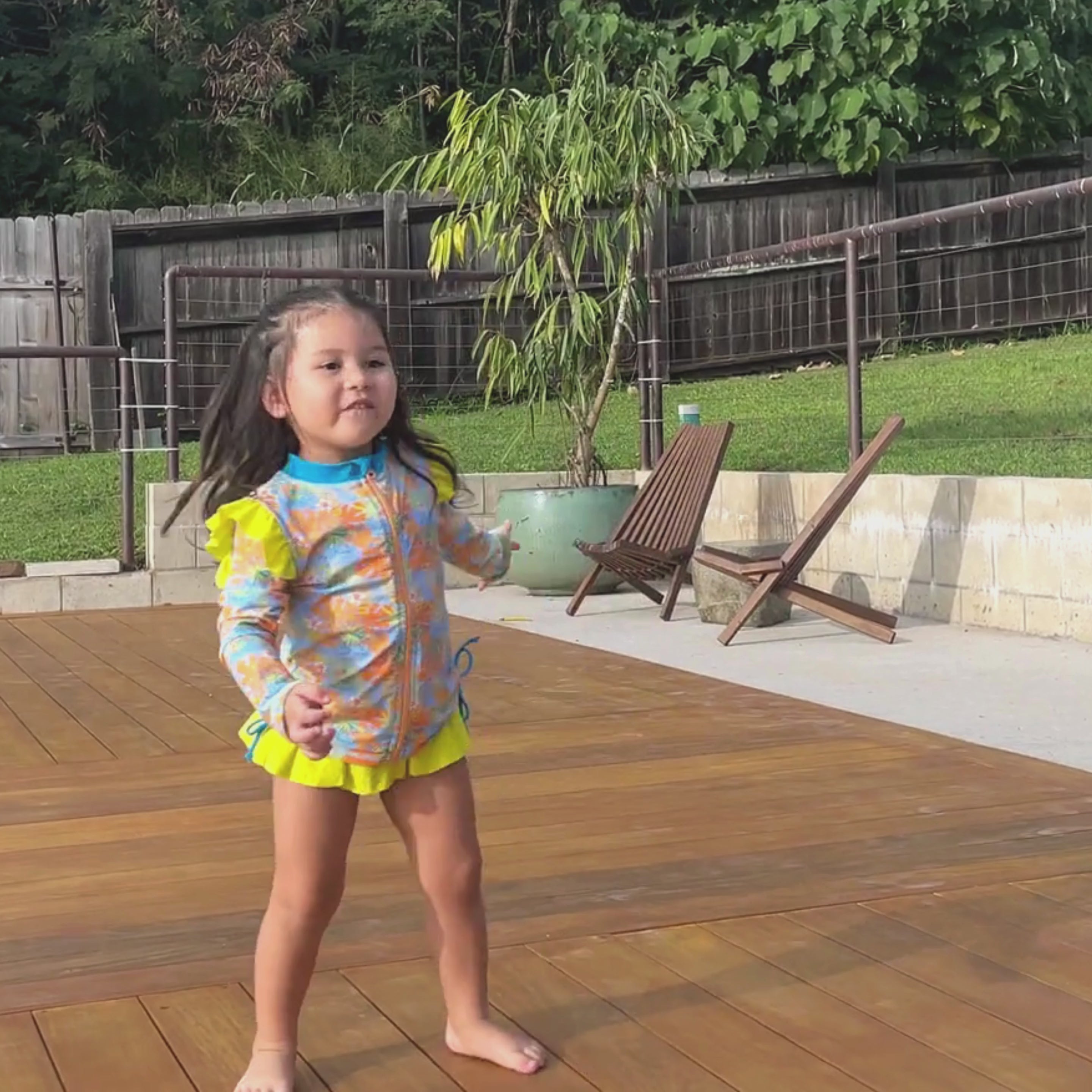 Girls Long Sleeve Rash Guard Ruffle Bottom Swimsuit Set (2 Piece) | "Groovy"