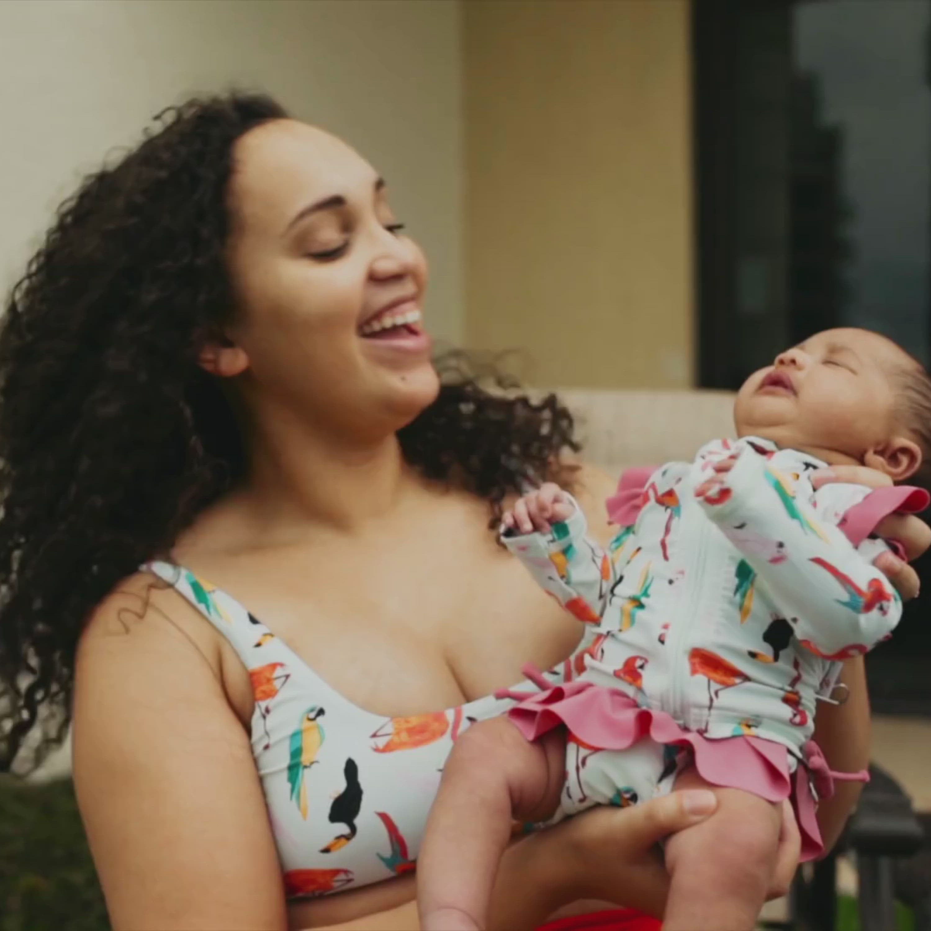 Girls Long Sleeve Rash Guard Ruffle Bottom Swimsuit Set (2 Piece) | "Tropical Birds"