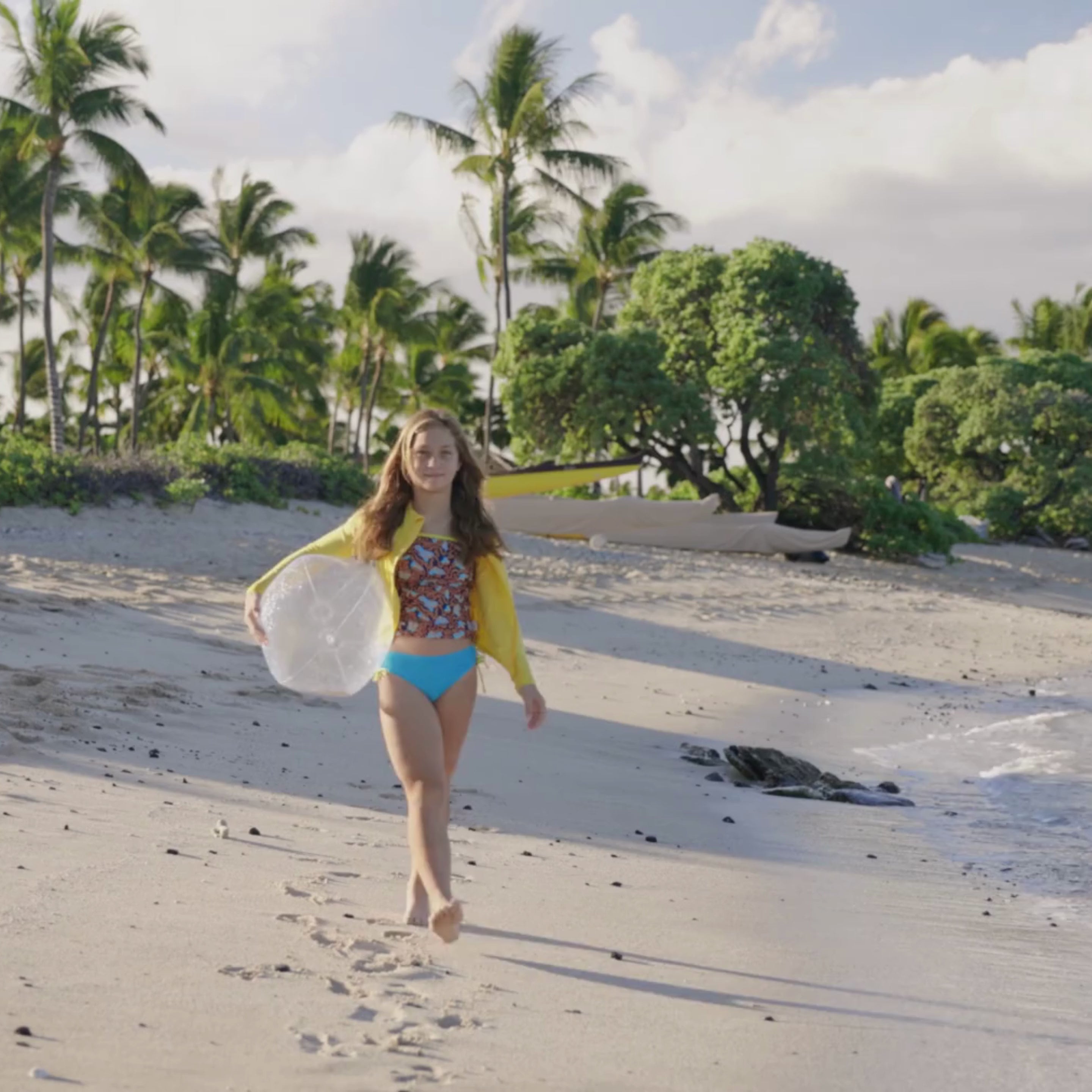 - Adjustable tie detail at waist of rash guard and bikini bottoms