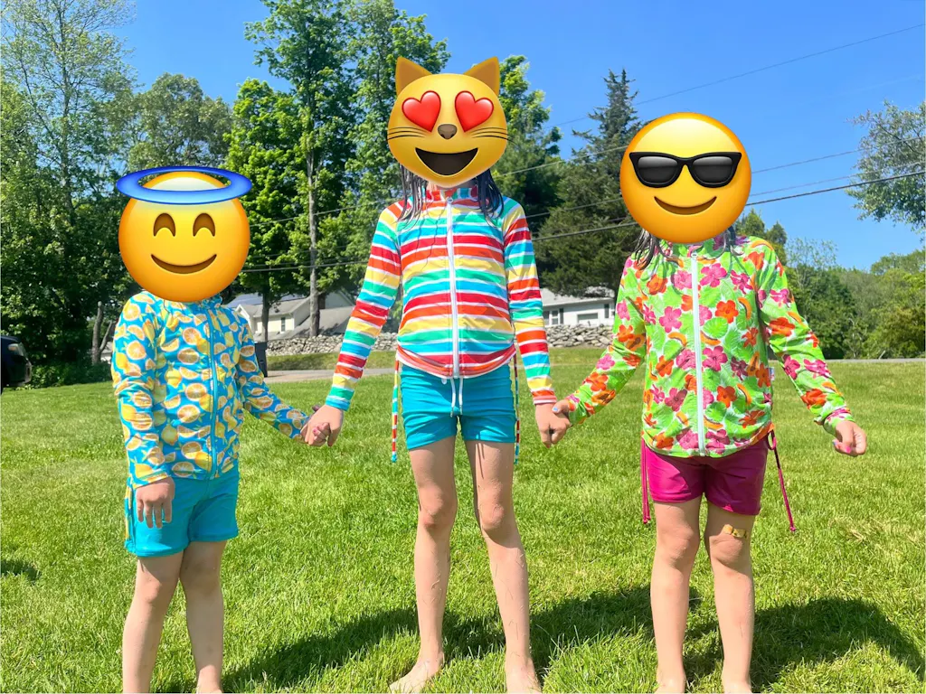 How great is this three-piece swimsuit set, complete with a long sleeve rash guard, tankini top and swim shorts?! The tankini has adjustable straps and the waist tie is fully adjustable, making this set a perfect option for always growing kiddos! They get the sun protection they need, while staying super comfy in this cute coordinating tankini set.