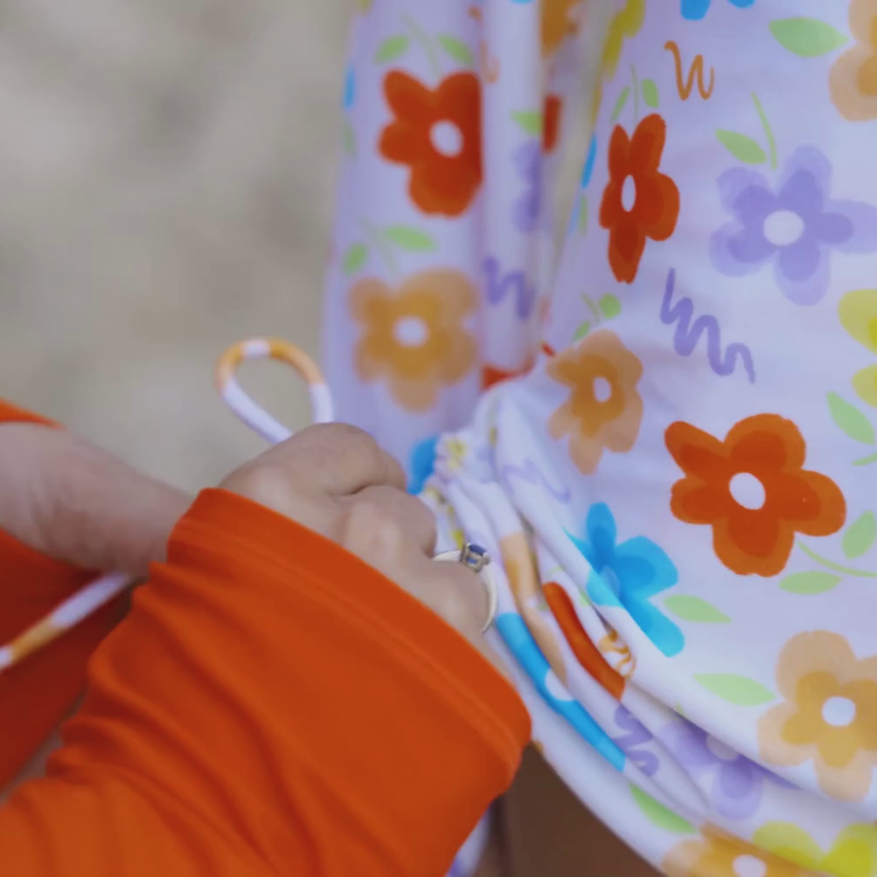 Bright and bubbly, our Blossom print features a fun mix of multi-colored flowers and playful squiggles.