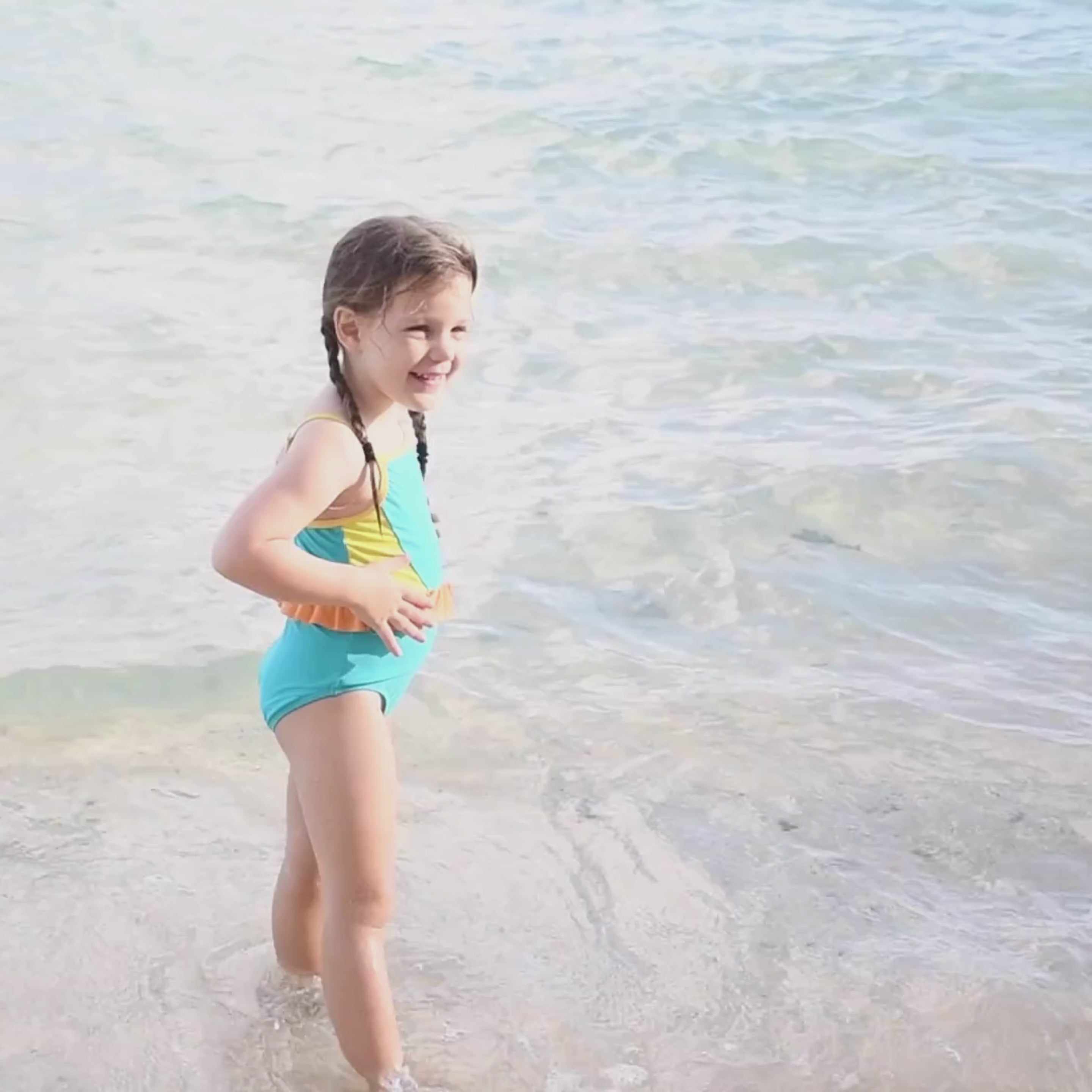 This one-piece swimsuit and long sleeve rash guard set is the perfect sun safe combo! Check out the cute color blocking and ruffle detail, and adorable coordinating rash guard. Swim jacket is great to toss on during those peak UV hours for extra sun protection.