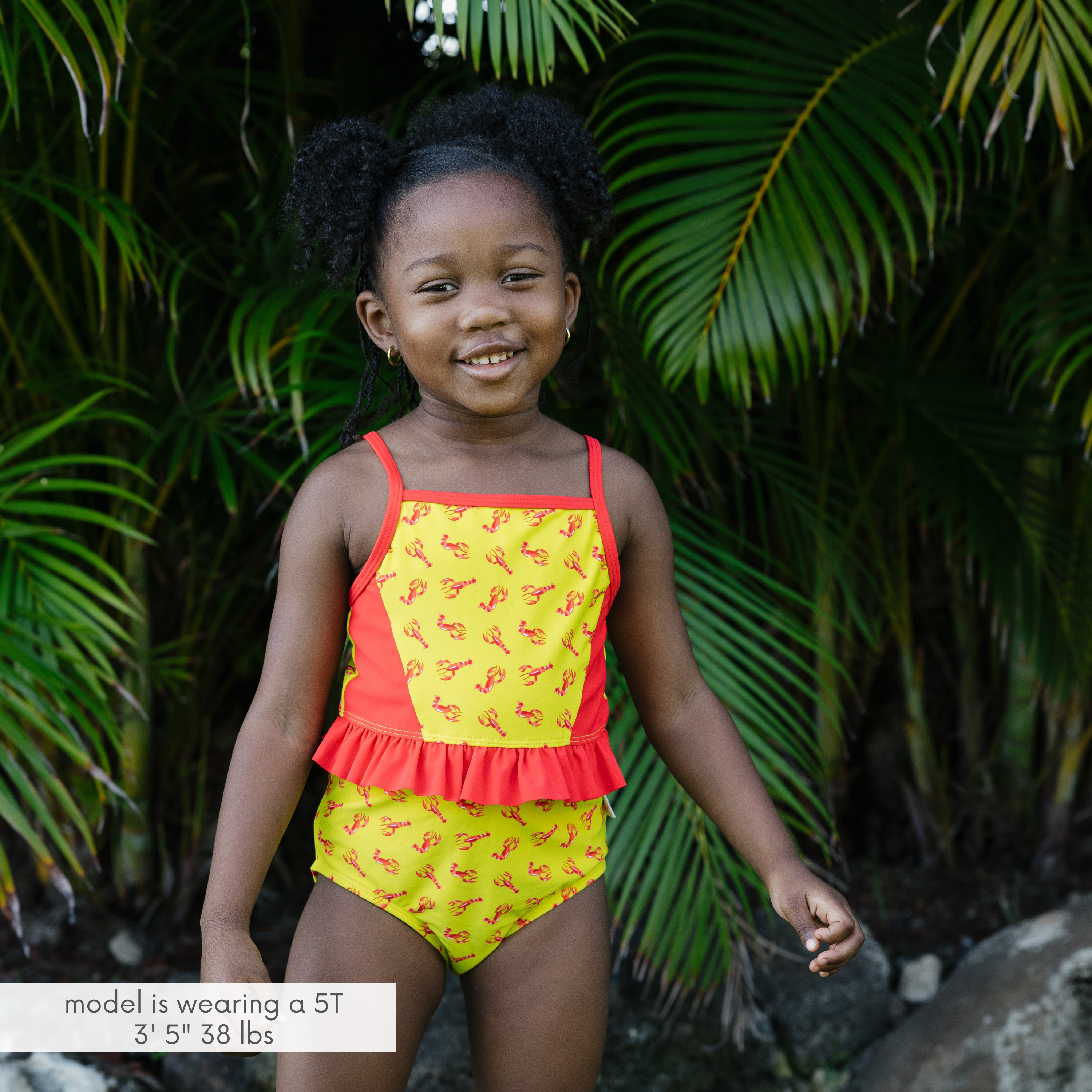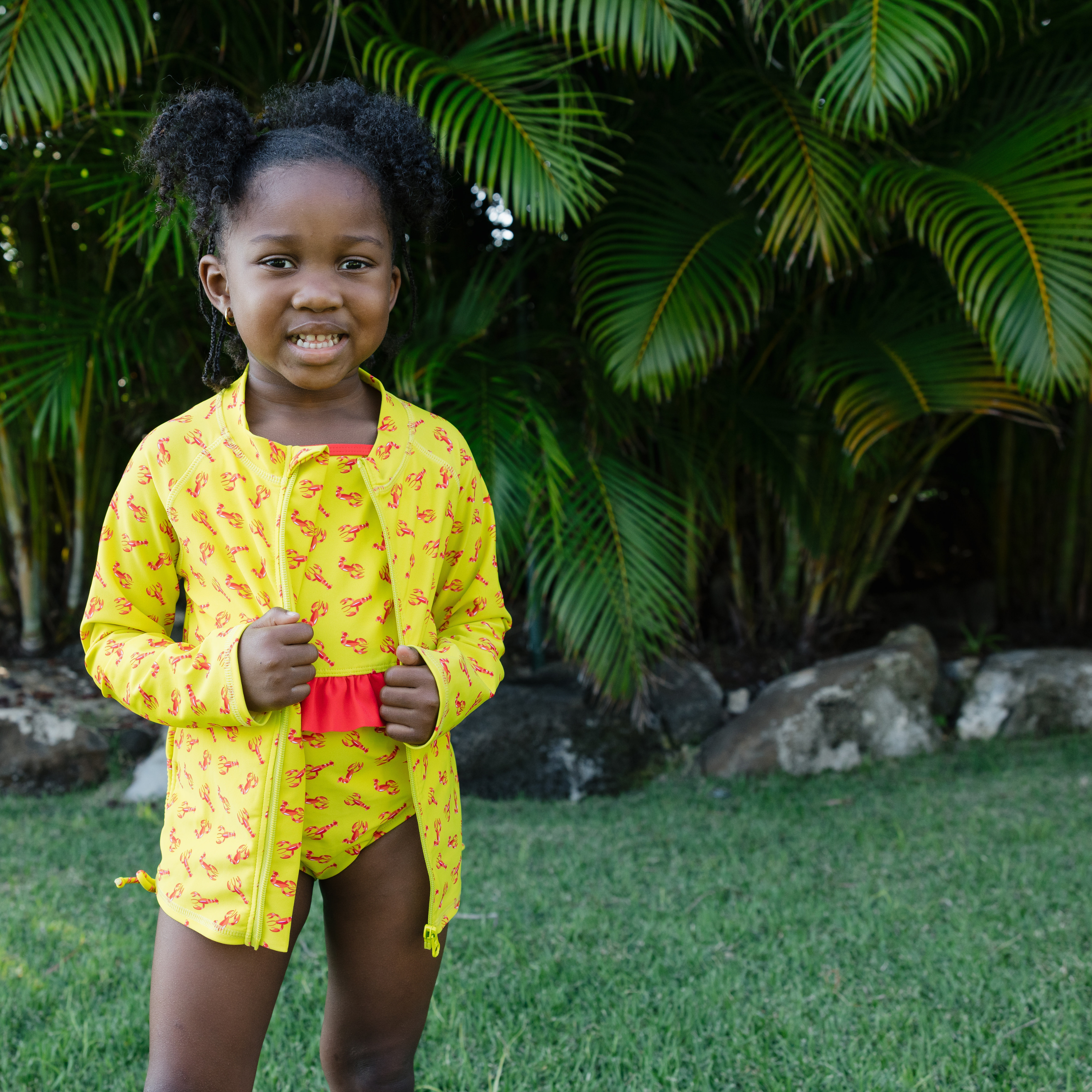 Girls One-Piece Swimsuit + Long Sleeve Rash Guard Set (2 Piece) | "Lobster"