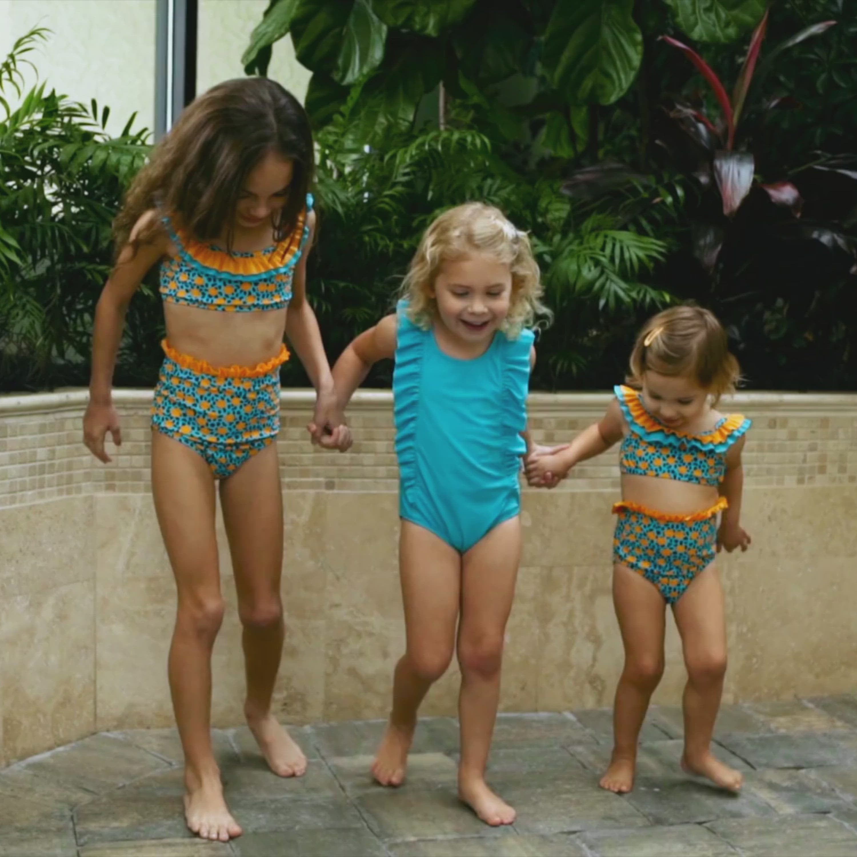 Girls Bikini 2 Piece Ruffle Swimsuit Set - "Geo Party"
