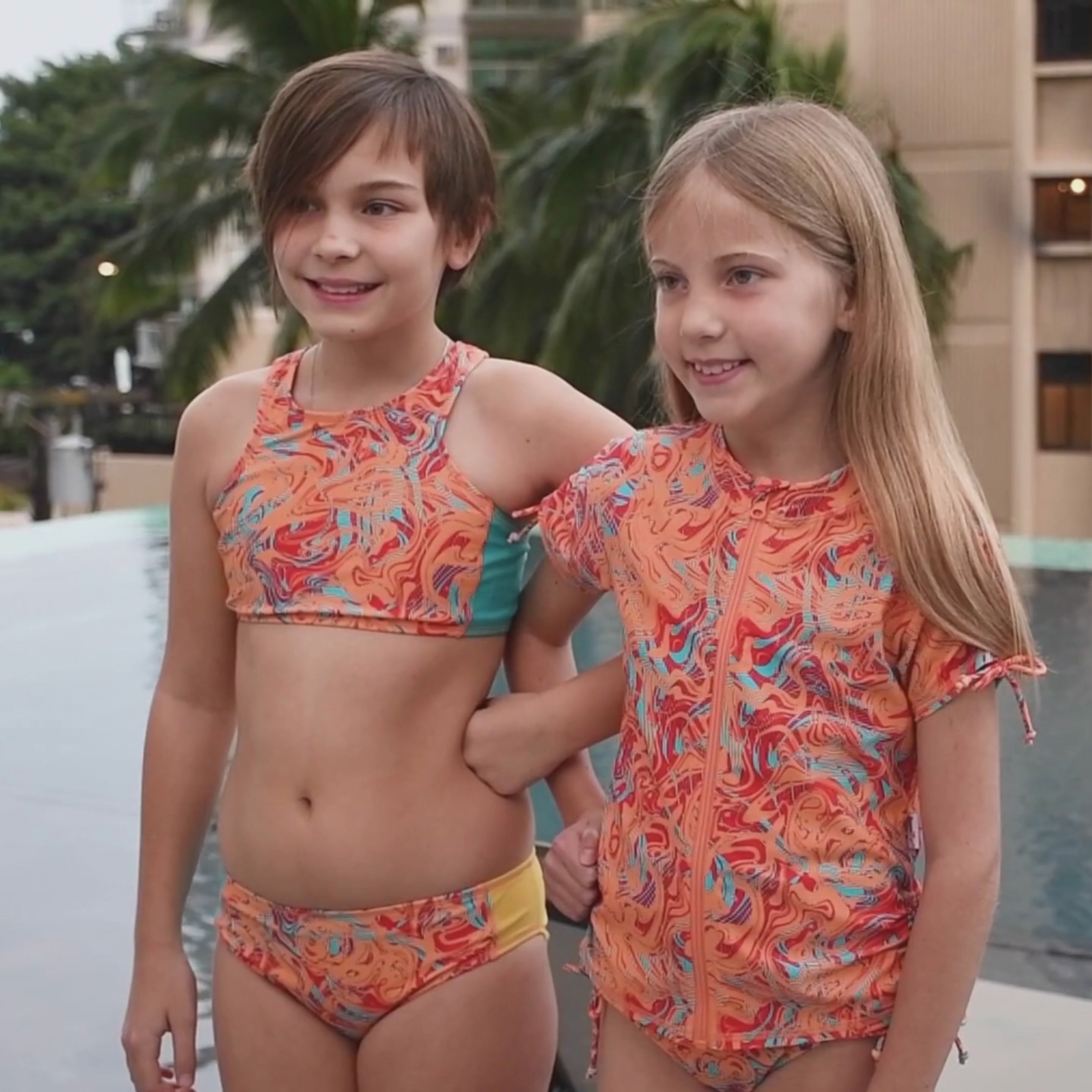 Girls Short Sleeve Rash Guard + Tankini Bikini Set (3 Piece) | "Swirl”