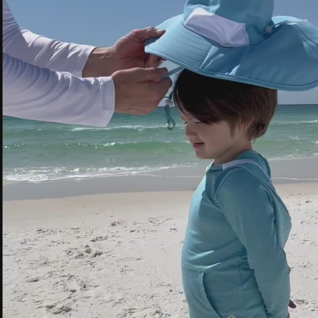 Kids Wide Brim + Flap Neck Sun Protective Adventure Hat - Aqua Sky