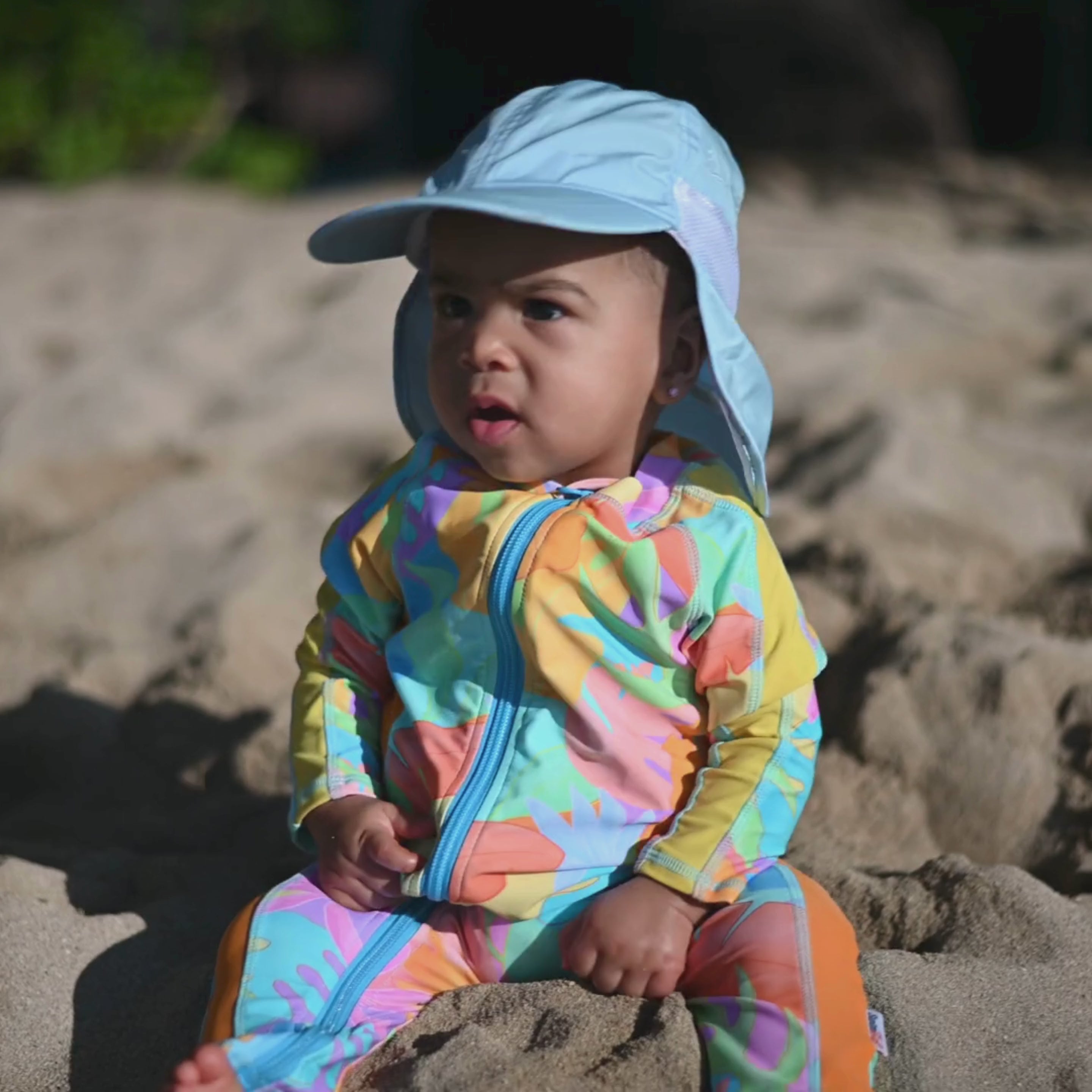 The perfect adjustable neck flap hat to keep the sun off the face and neck of babies, toddlers and kids!
