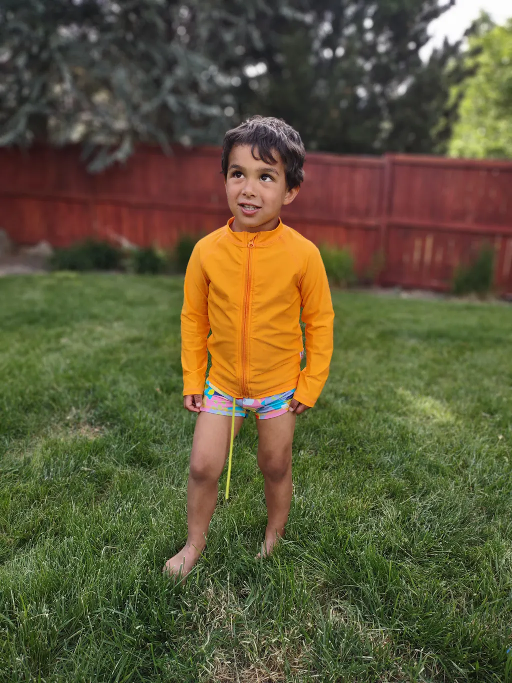 Kids UPF 50+ Long Sleeve Zipper Rash Guard Swim Shirt | "Orange" Sale price$ 24.99