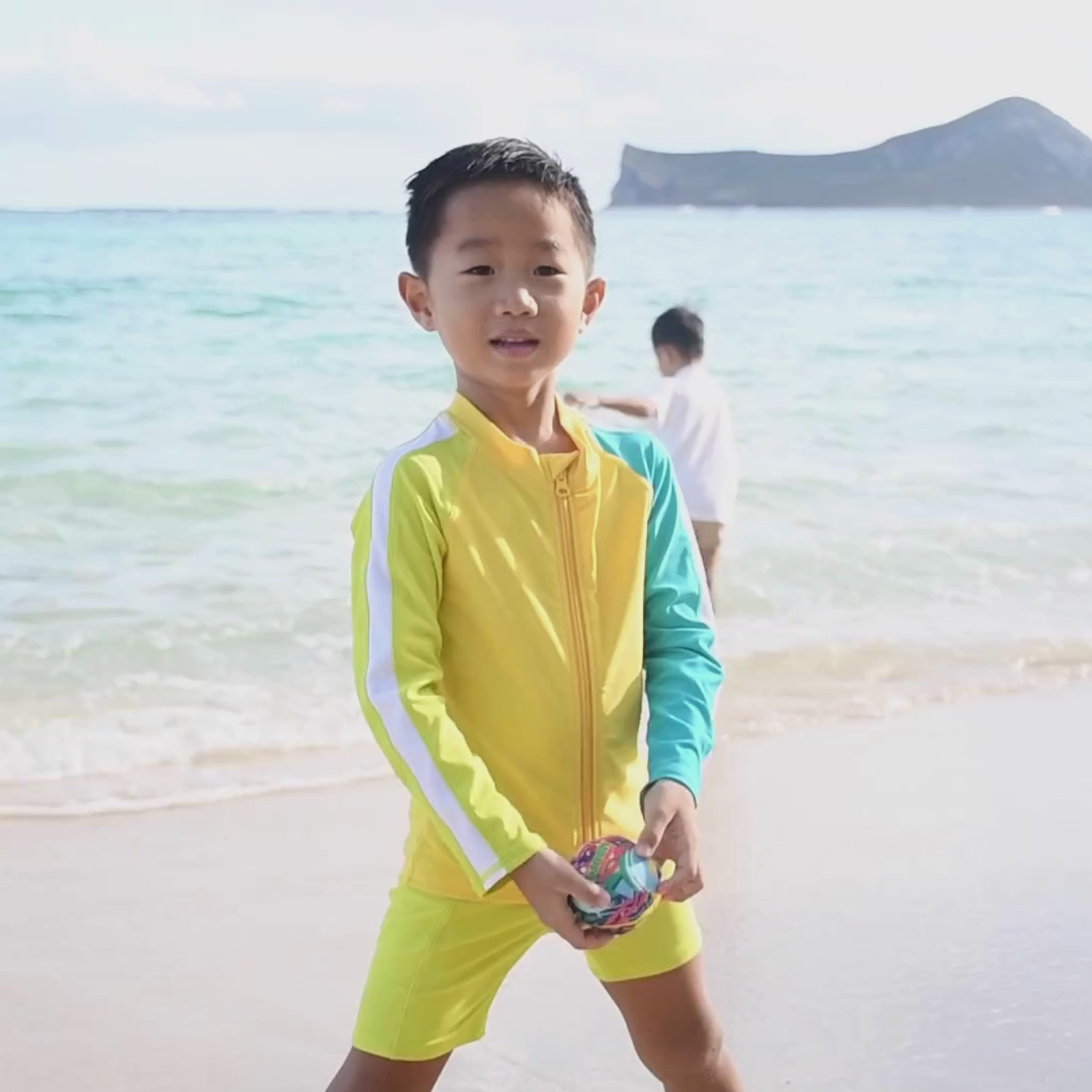 Our signature long sleeve rash guard is the perfect UV protective swim jacket that will keep your kiddo protected from the sun all day long. It’s perfect for the pool, beach, and everywhere in between.