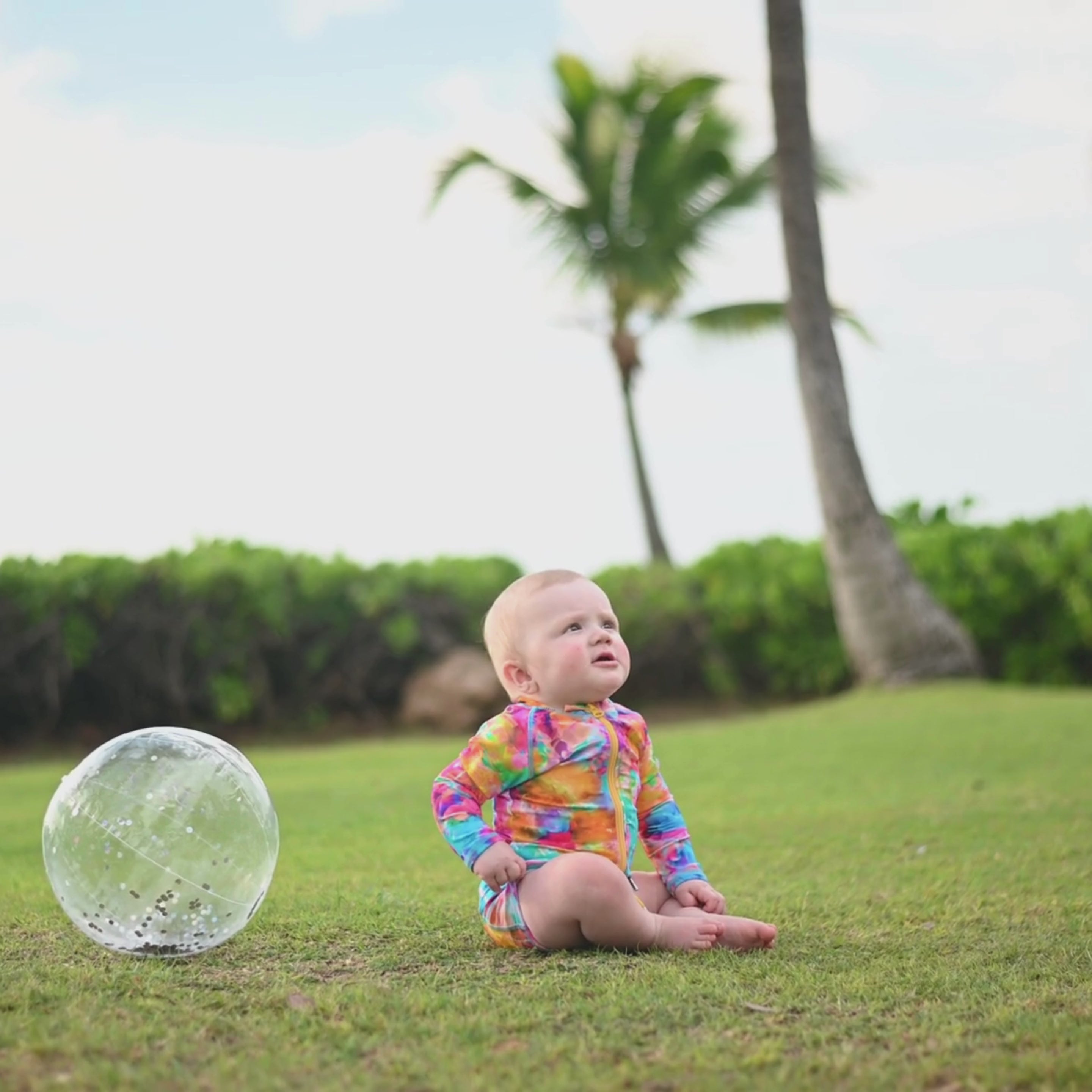 Our signature long sleeve rash guard is the perfect UV protective swim jacket that will keep your kiddo protected from the sun all day long. It’s perfect for the pool, beach, and everywhere in between.