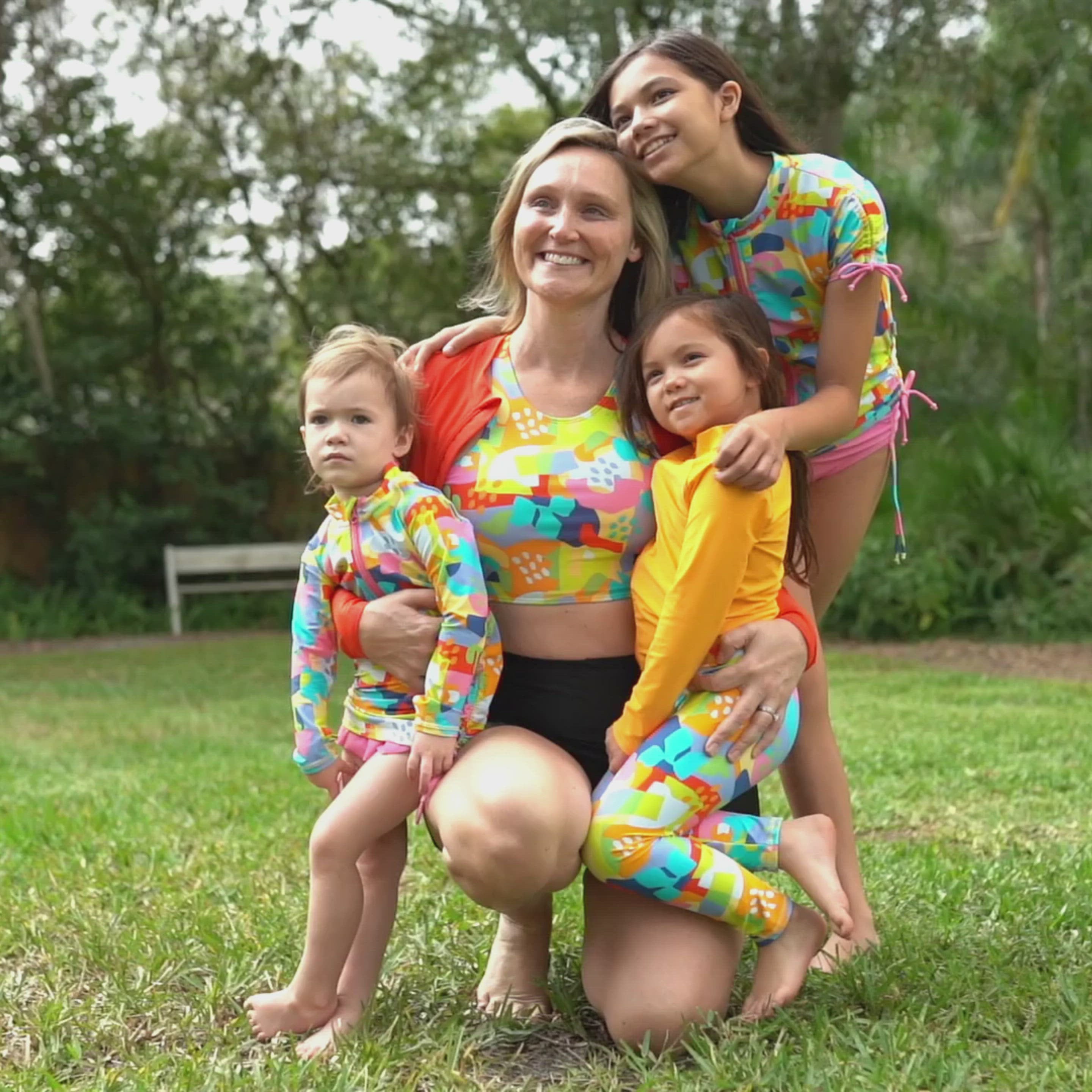 Get ready for all the joyful memories to be made wearing our new Joyful print featuring fun, abstract shapes in an array of colors.