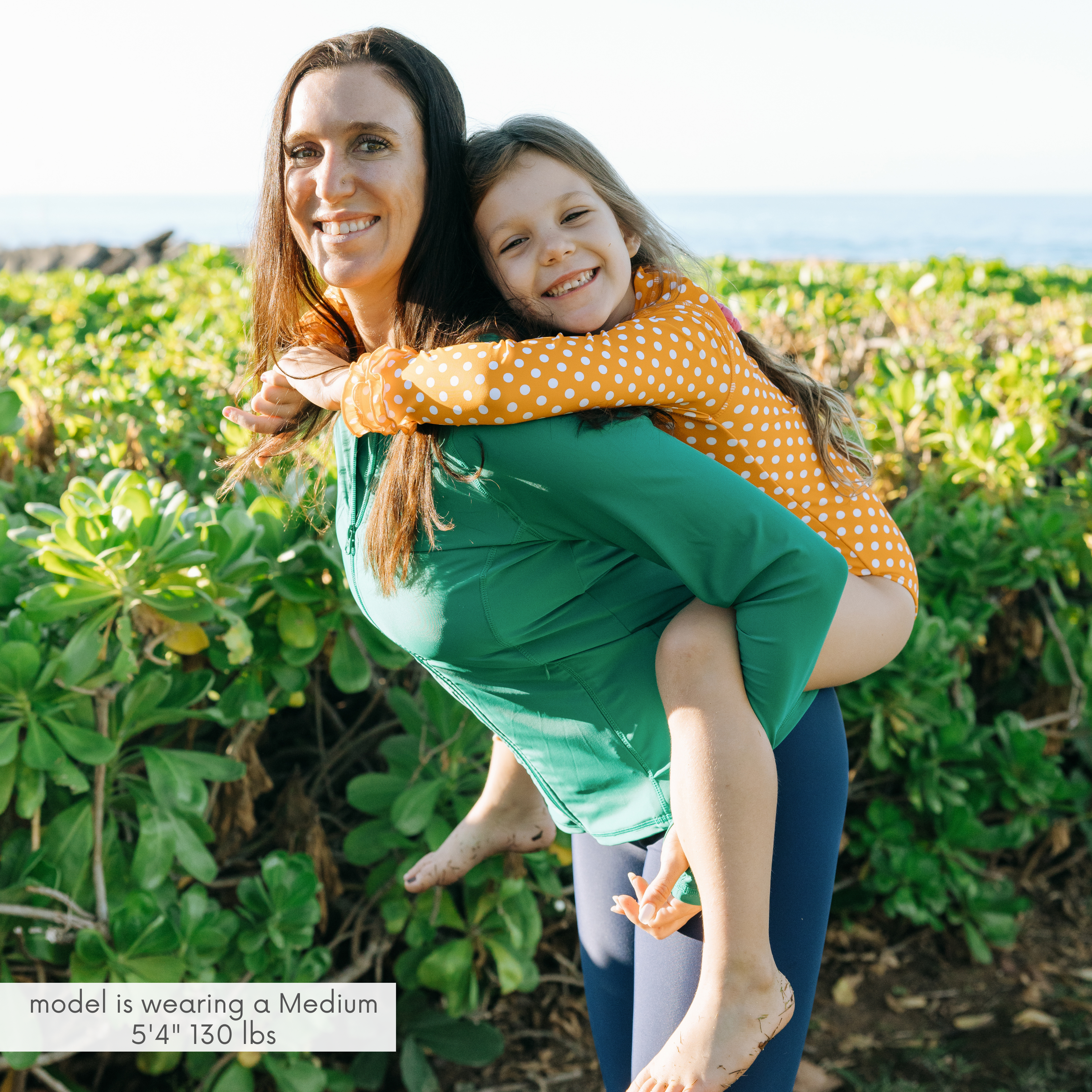 Our women’s long sleeve zipper rash guard looks great and gives easy all day sun protection both in and out of the water.