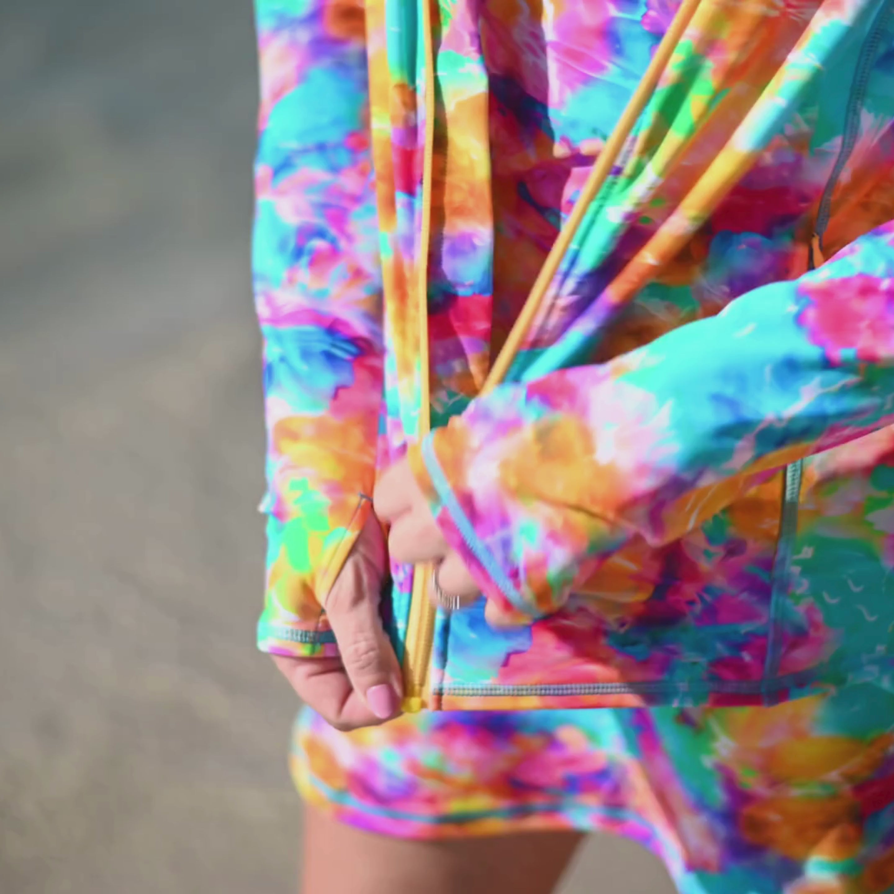 This women's long sleeve rash guard swim shirt is the perfect thing to wear for the pool, an outdoor hike or running errands. With a relaxed, easy fit it's the perfect thing to keep you cool and covered every day! It features front pockets with zipper closures, thumb holes, a zipper guard along the inside of the zipper to reduce rubbing/irritation and loads more details to make it your favorite go-to swim jacket.