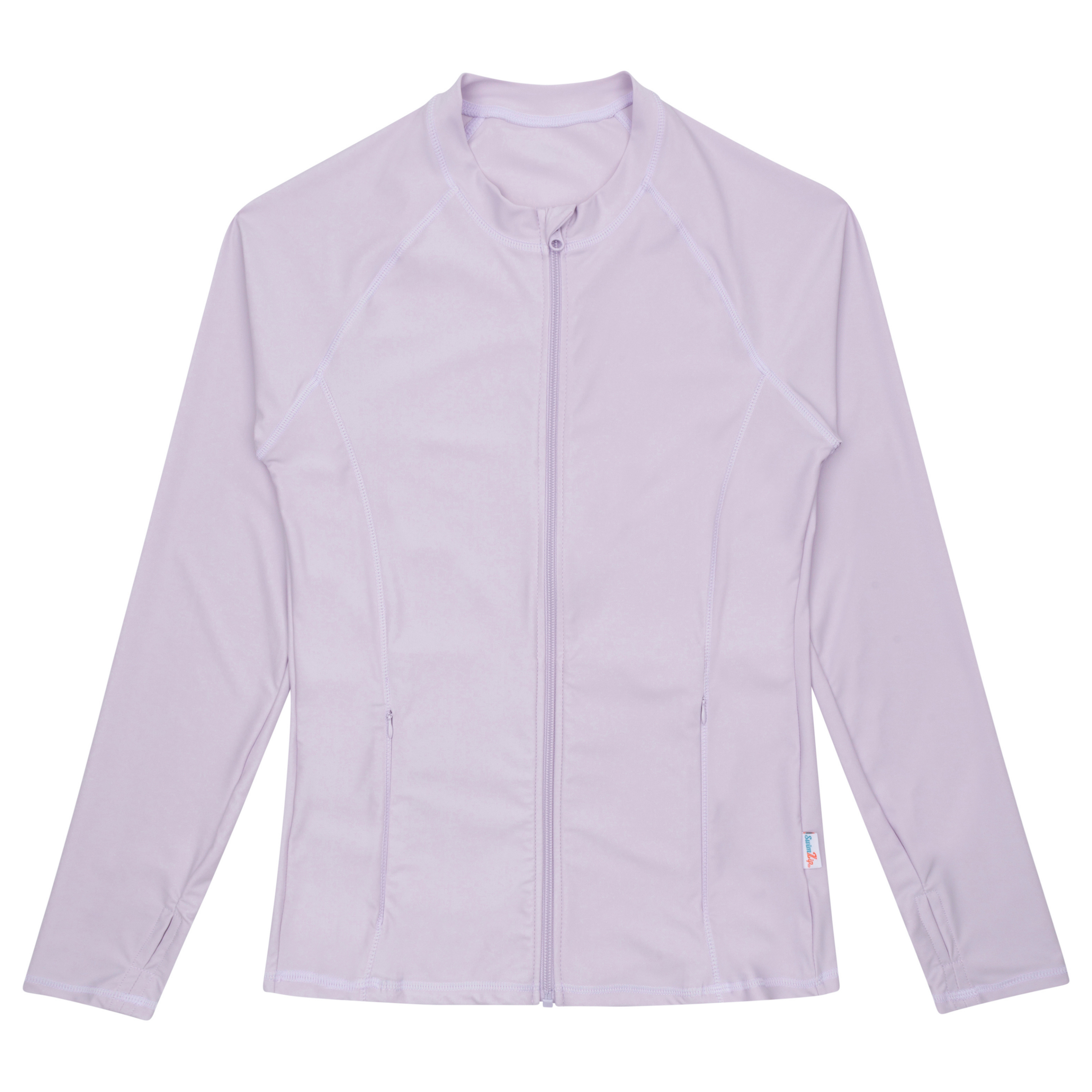 This women's long sleeve rash guard swim shirt is the perfect thing to wear for the pool, an outdoor hike or running errands. With a relaxed, easy fit it's the perfect thing to keep you cool and covered every day! It features front pockets with zipper closures, thumb holes, a zipper guard along the inside of the zipper to reduce rubbing/irritation and loads more details to make it your favorite go-to swim jacket.