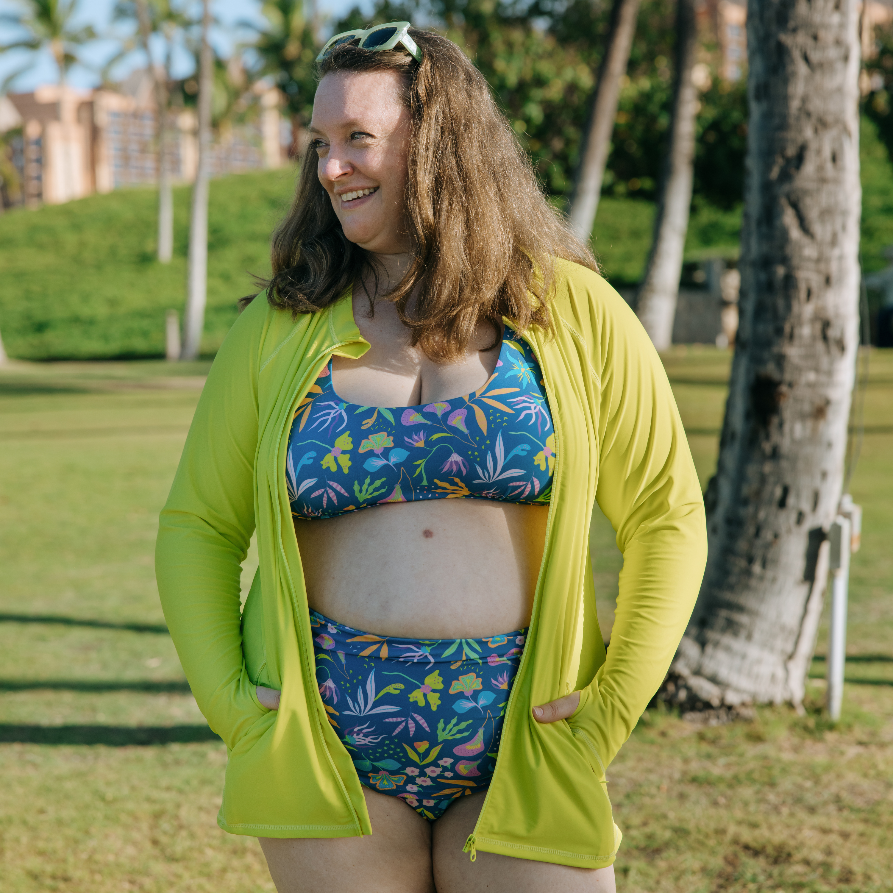 Our women’s long sleeve zipper rash guard looks great and gives easy all day sun protection both in and out of the water.
