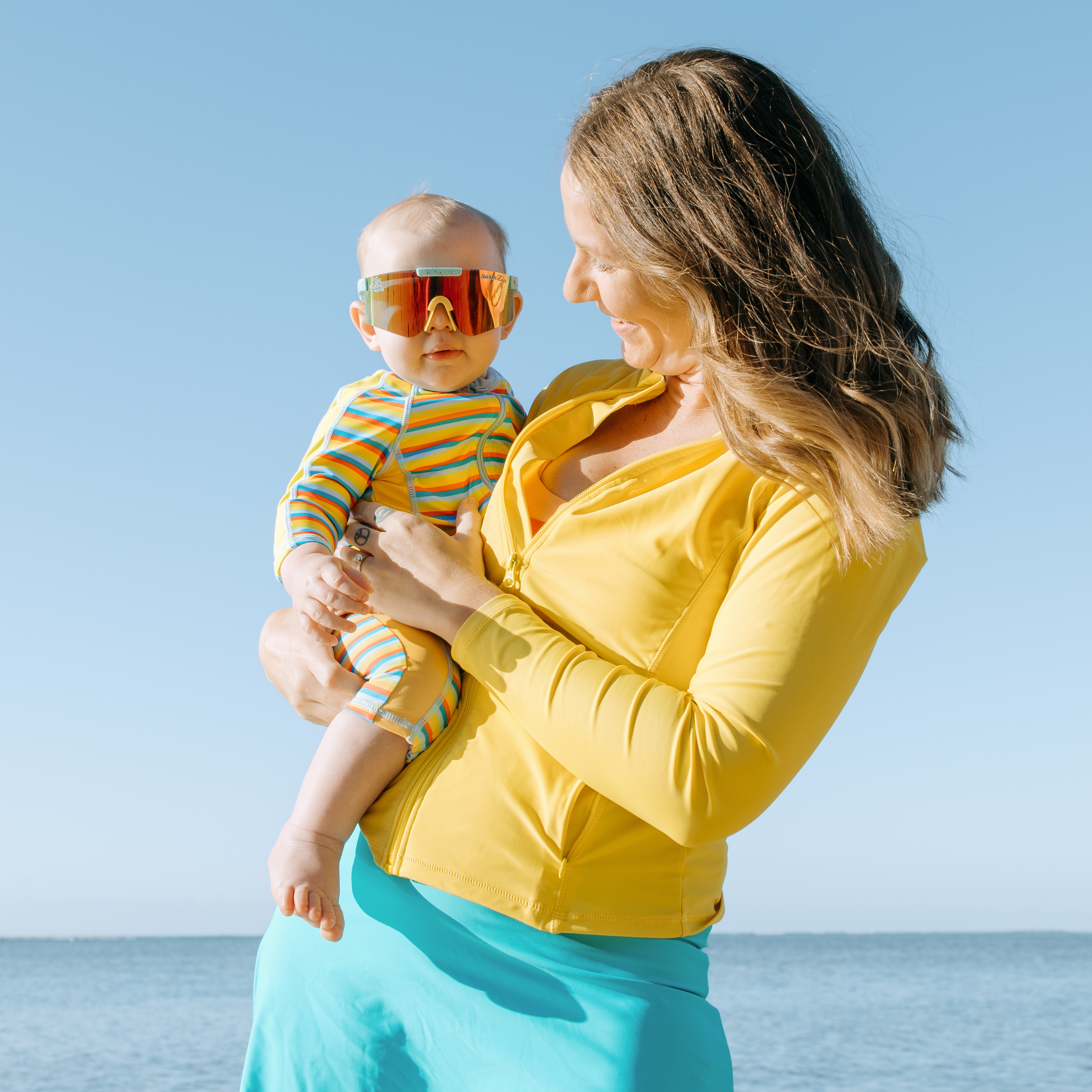 Our women’s long sleeve zipper rash guard looks great and gives easy all day sun protection both in and out of the water.